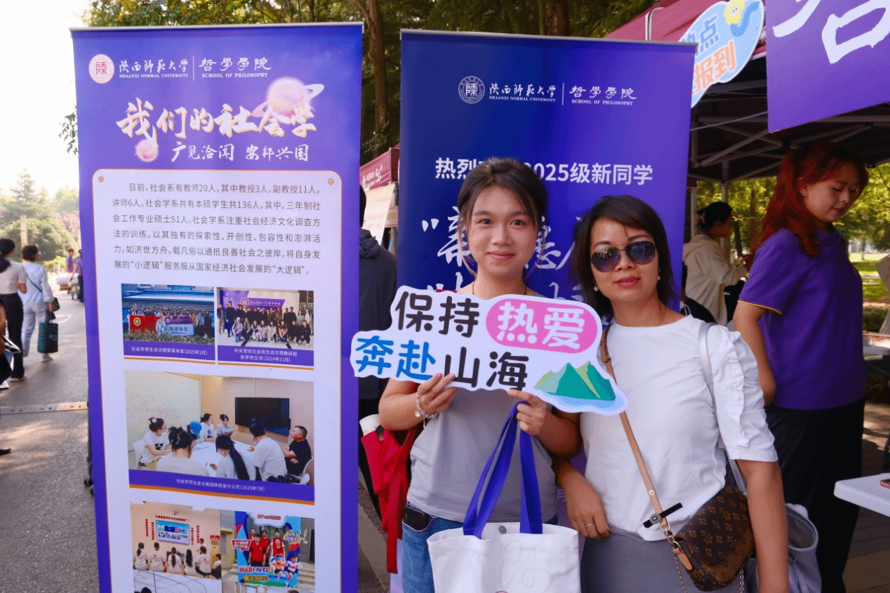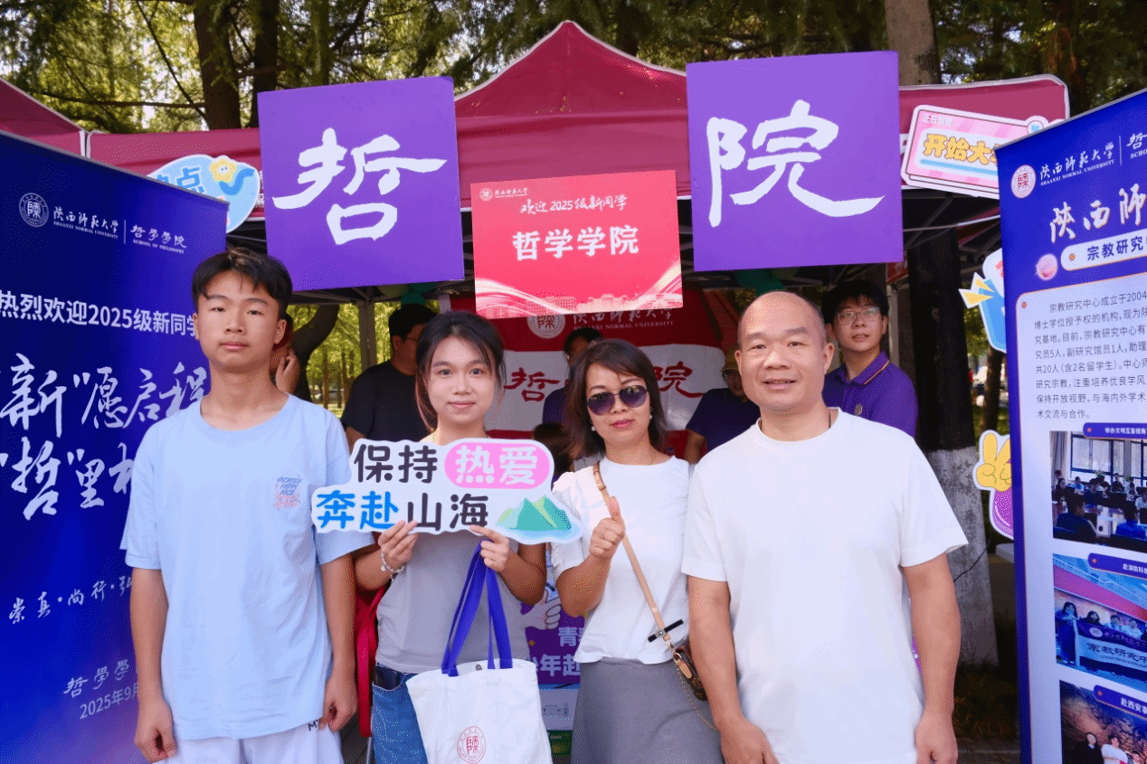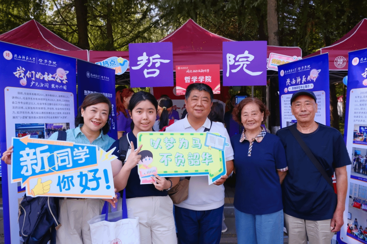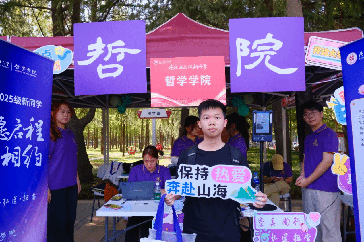 新生和家长们纷纷在主题展板前合影,镜头定格笑颜,也记录了你们与哲学院的第一次相逢。时光会走远,但影像能长存,这一刻的喜悦与期待,将成为大学生涯温暖的开篇。