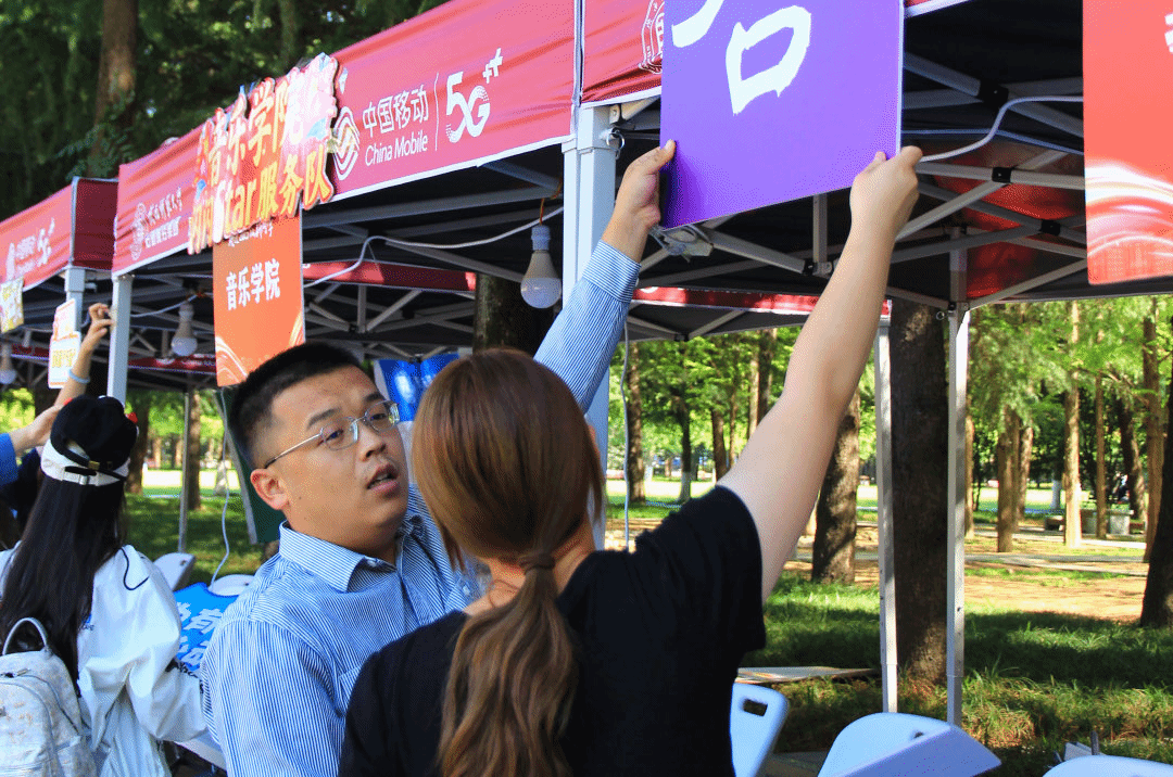 帐篷支起,展板立定,“太阳成集团tyc234cc古天乐”的字样在阳光下格外醒目。每条横幅都被细心悬挂,每个座位都被妥善安排。这一切细致筹备,只为能让你顺畅开启大学旅程。