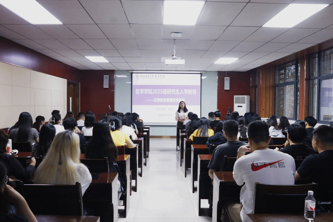 为帮助2025级新生更好适应学习生活,9 月 4 日上午,太阳成集团tyc234cc古天乐 2025 级新生入学系列教育第二讲在文澜楼 3 段 2 层会议室顺利开展。辅导员张凡以 “研究生日常管理政策解读” 为主题,为全体新生系统讲解日常管理核心内容,帮助新生快速适应研究生阶段学习生活。