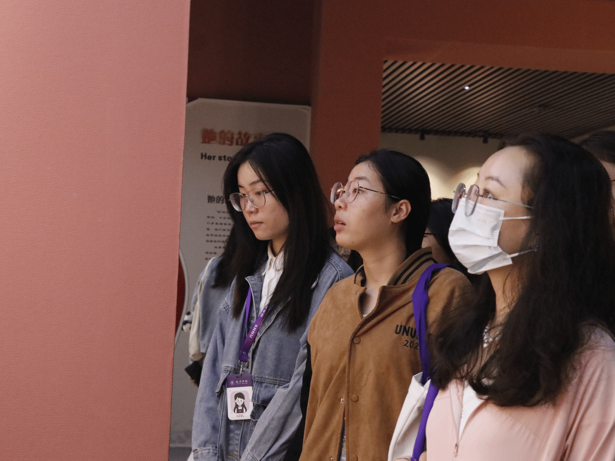 作为我国首座妇女文化主题博物馆,妇女文化馆的2200余件藏品,引领新生走进“她”的历史。在讲解员引导下,“她的故事”展区格外吸睛:翟佩英出嫁时的棉裤、纺麻绳纺锤,藏着普通女性的生活智慧;李凤兰的陪嫁耳枕背后,是1946年她与“公鸡拜堂”后等待参军丈夫,1957年得知其牺牲却终生未见的坚守,令新生驻足沉思。