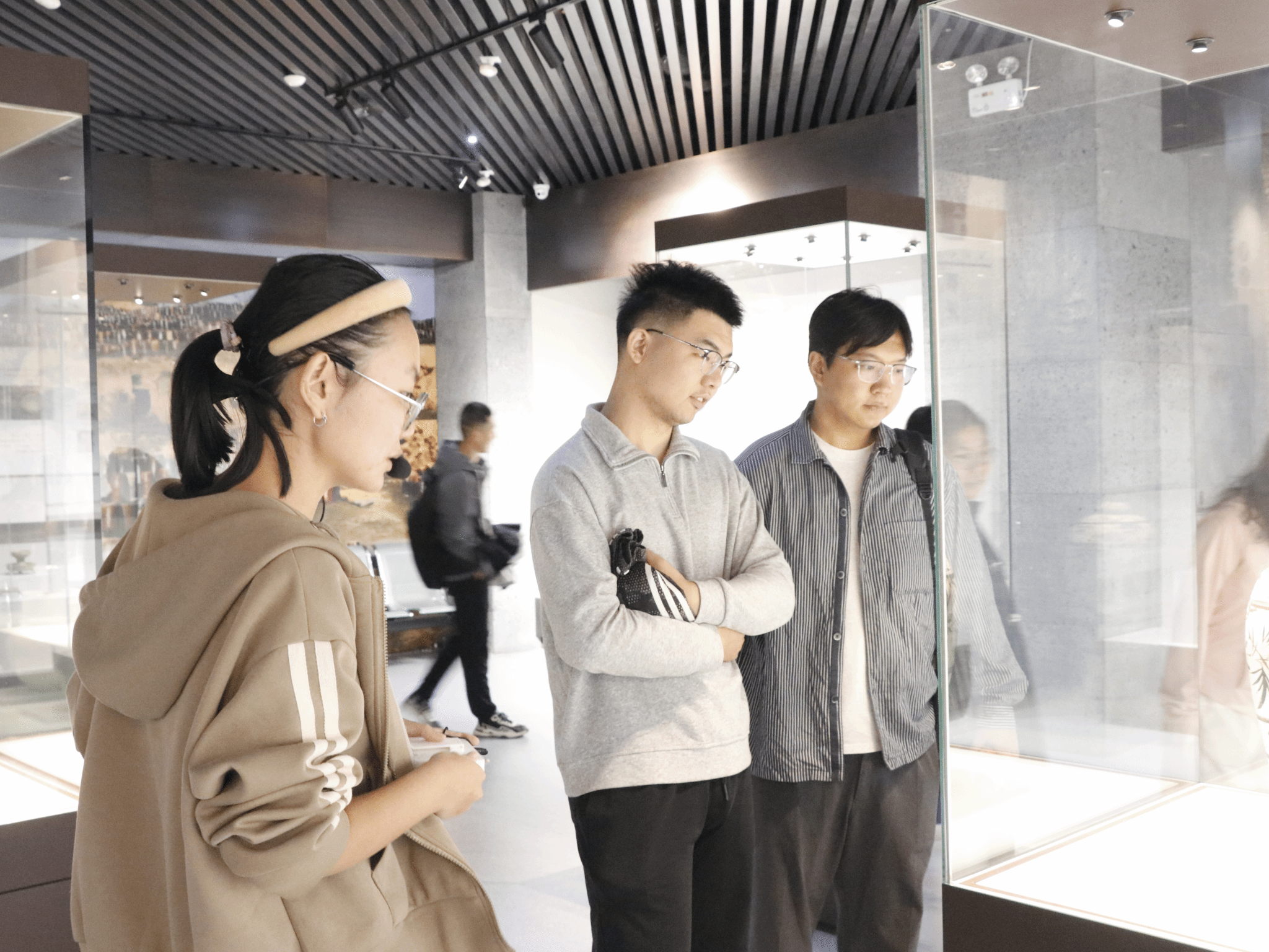 告别妇女文化馆,新生们步入历史文化馆。馆内1500余件历代文物,沿“泥火塑精灵”“吉金铸国史”“贞石镌春秋”三大展区铺陈开来,尤其是几件镇馆之宝,让新生们连连惊叹。